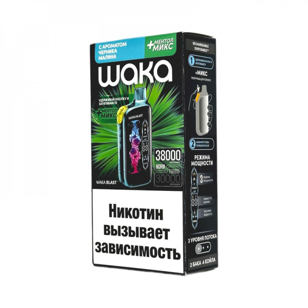 WAKA BLAST 38000 Hard - Черника малина + ментол микс - купить в Уфе